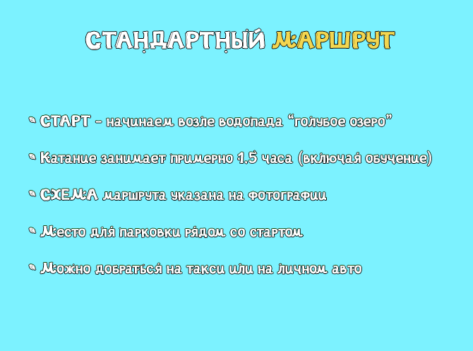 Краткая характеристика Длительность прогулки ~ 1.5 часа Сложность ☺☺ Красота локации ☺☺☺☺☺ Длительность прогулки ~ 1.5 часа Сложность ☺☺ Красота локации ☺☺☺☺☺ Оставить заявку Поделиться